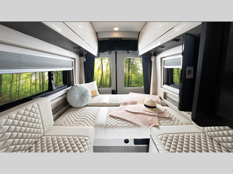 Sleeps 2 Length 22 ft Ext Width 7 ft 2 in Ext Height 10 ft Int Height 6 ft 6 in Interior Color Crown Point GVWR 11000 lbs Fresh Water Capacity 28 gals Grey Water Capacity 26 gals Black Water Capacity 16 gals Tire Size 205/75R16C Furnace BTU 20000 btu Generator 2800W Fuel Type Gasoline Engine 3.5L EcoBoost V6 Chassis Ford Transit AWD 350HD Horsepower 310 hp Fuel Capacity 25 gals Wheelbase 148 in Torque 400 ft-lb Refrigerator Size 3.1 cu ft Cooktop Burners 1 Shower Size 25" x 47" Number of Awnings 1 Axle Weight Front 4360 lbs Axle Weight Rear 7700 lbs LP Tank Capacity 20 lbs. Water Heater Type Truma Combi Eco Plus AC BTU 13500 btu TV Info LR 24" TV Awning Info Carefree® armless motion sensing patio with LED light strip Gross Combined Weight 13000 lbs Shower Type Wet/Bath Shower Electrical Service 30 amp Solar Wattage 200 watts Similar Floorplans