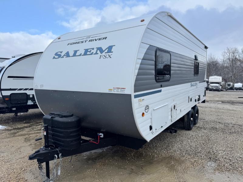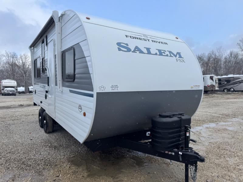 The Forest River Salem FSX travel trailers and toy hauler travel trailers are ultra comfortable and lightweight, perfect for first time or seasoned campers alike! You will love how easy it will be to relax with residential features that will make your space feel just like home, and the durable construction means you can enjoy your RV for years to come. There are a wide variety of floorplans to choose from, including couple's trailers, bunk models, and toy haulers, all with full bath and kitchen amenities and plenty of storage for all your gear!