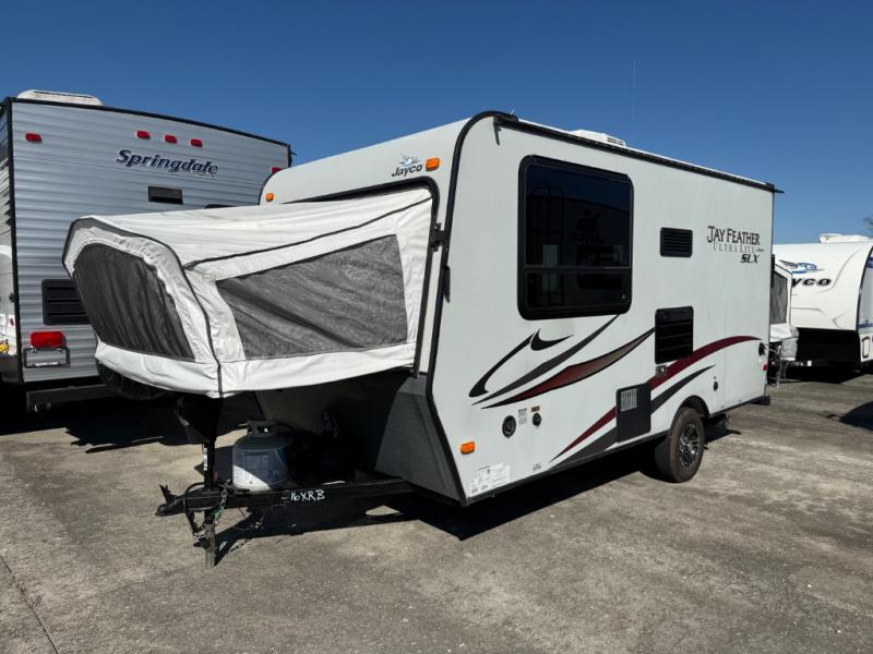 Enjoy lightweight camping in a modern, up-to-date Jay Feather Micro travel trailer by Jayco!