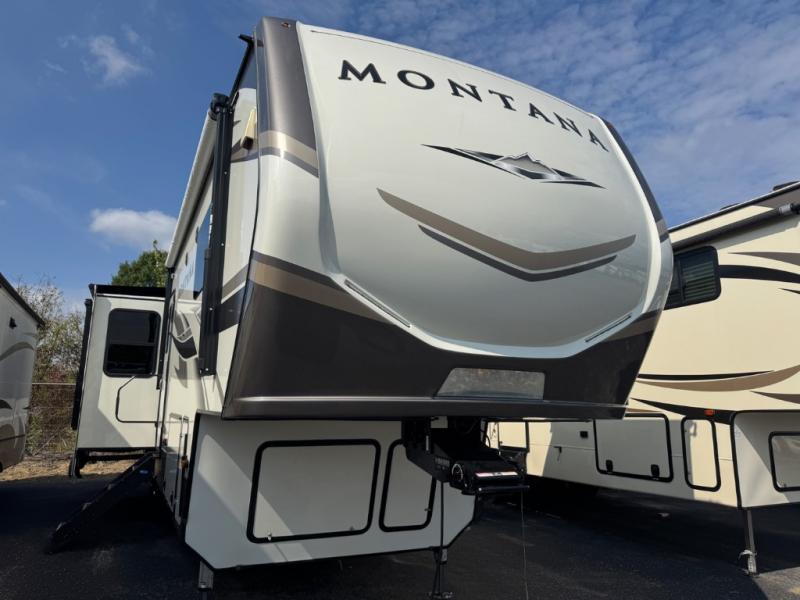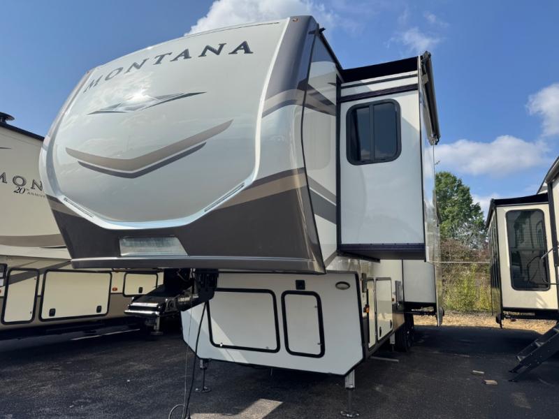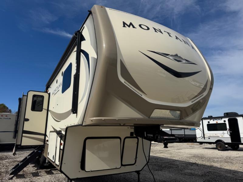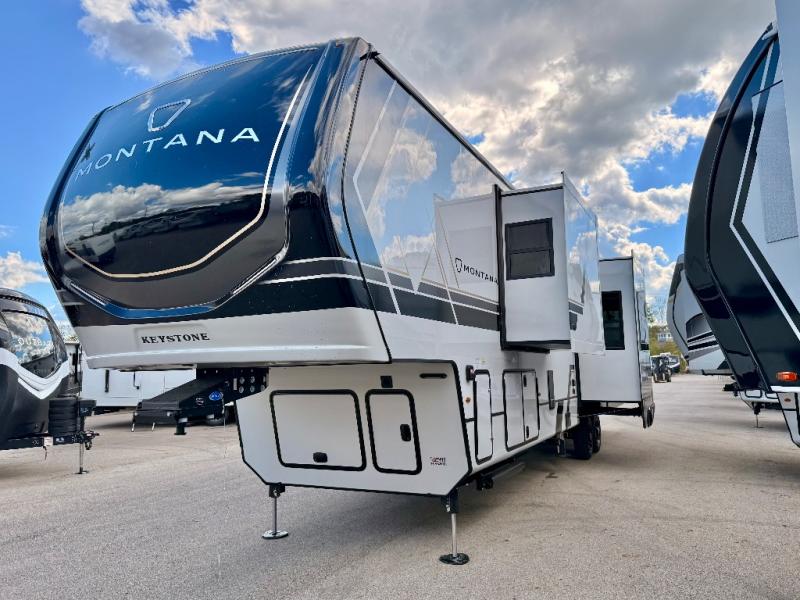 At RCD RV, we offer the new Keystone RV Montana Fifth Wheel for sale. The all new fifth wheel RV set the standard for mobile living, with exciting new options like factory-installed MorRyde® independent suspension and Splendide stackable washer/dryer. Fully refreshed exterior and interior styling redefine the meaning of your home on the road. Blending luxury, innovation, and capability, the Keystone Montana is the one right for you and your family.
