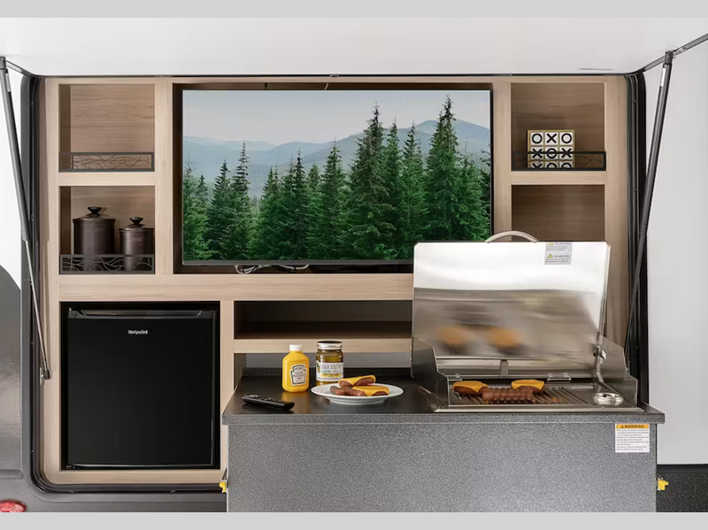 - Queen size bed w/ built-in pet kennel storage (select models)