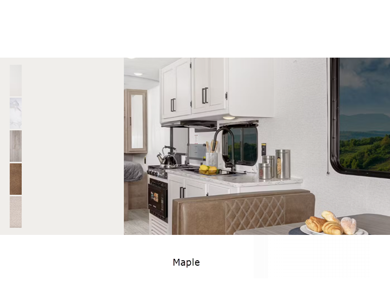 Each model is constructed with an aluminum exterior and durable materials so you can enjoy your RV for years to come. The power awning provides an outdoor living space you are sure to love. You will feel at home with the modern interior design, comfortable sleeping spaces, and plenty of storage for your belongings.