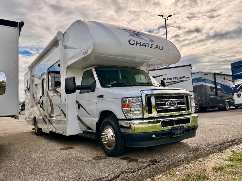 Experience a smooth ride to each destination with the Thor Motor Coach Chateau Class C gas motorhomes! There is a Ford E-Series chassis and each model includes an 8,000 lb. trailer hitch to bring the family car along. They are constructed with a welded tubular aluminum roof, sidewall cage construction, vacu-bond laminated roof, walls, and floor with block foam insulation to keep the heat and air conditioning inside. The slick fiberglass exterior with graphics package and black framed windows are sure to turn heads down the highway too. Inside, you'll be met with residential vinyl flooring, premium window privacy shades, a power bath vent, and pressed laminate kitchen countertops. There is even a tankless water heater for endless hot showers, a 4.0 kw dual gas/LP generator to keep you going, and a 100-watt solar charging system for off-grid capabilities!