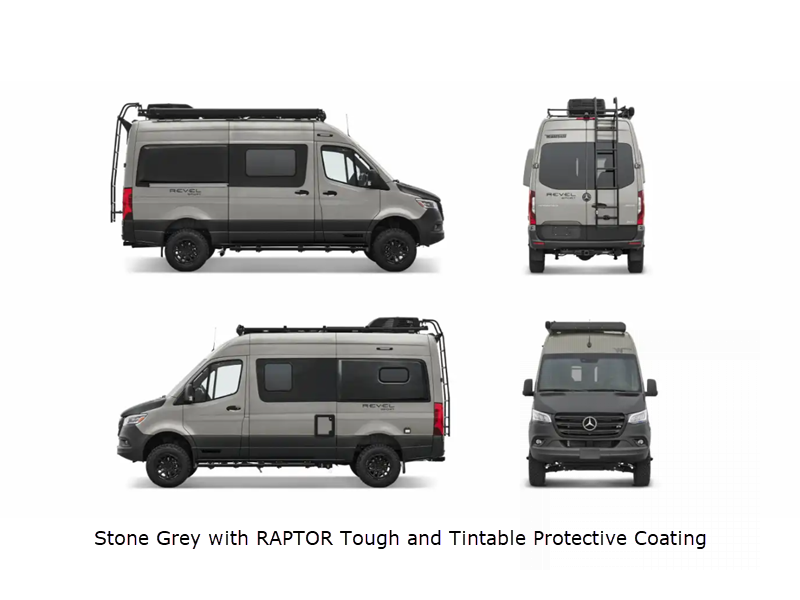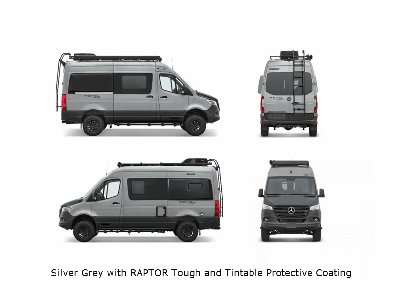 Sleeps 2 Length 19 ft 7 in Ext Width 7 ft 3 in Ext Height 10 ft Int Height 6 ft 3 in Interior Color Intrepid Exterior Color Silver Grey, Stone Grey, Selenite; With or Without RAPTOR Tough and Tintable Protective Coating Hitch Weight 5000 lbs GVWR 9050 lbs Fresh Water Capacity 24 gals Grey Water Capacity 21 gals Black Water Capacity 5 gals Fuel Type Diesel Engine 2.0L High Output Turbo Diesel 4-Cylinder Chassis Mercedes-Benz AWD Sprinter Fuel Capacity 24.5 gals Wheelbase 144 in Number Of Bunks 1 Refrigerator Type 12V Single Door Compressor Driven Refrigerator Size 3 cu ft Cooktop Burners 1 Shower Size 31" x 26" Axle Weight Front 4409 lbs Axle Weight Rear 5359 lbs Water Heater Type Hydronic Gross Combined Weight 13930 lbs Shower Type Wet/Bath Shower Electrical Service 30 amp -