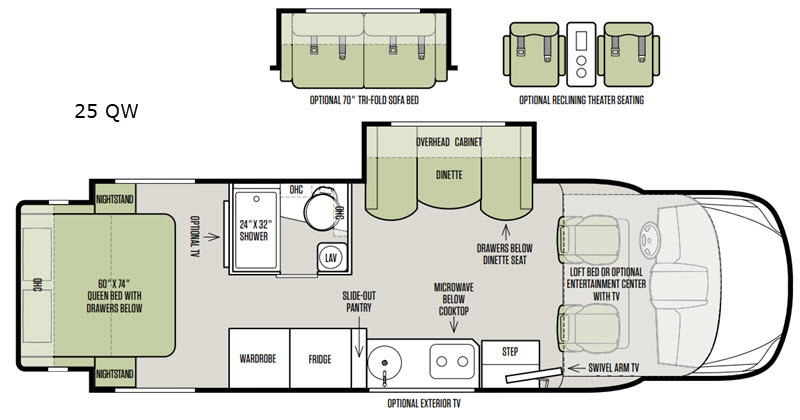 Built on a truck chassis with a recognizable over-cab sleeping and storage area, a new Class C motorhome is bigger than your Class B camper RVs and slightly smaller than your gradeur Class A motorhomes, and can be found at any of our 5 RV dealerships in Ohio. As one of the most popular RVs, they can be driven with ease of drive, setup, and storage for all your adventures. You can find Class C motorhomes under RV manufacturers including: