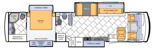 The interior design, especially the bathroom area with his and hers sinks; separate commode behind an actual solid wood door; a separate shower; and a washer/dryer combination as well. My wife and I really love the setup, which is rare.