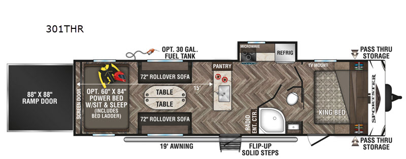 *All RV prices exclude sales tax, title, registration as well as documentary, freight & prep fees. All payments are with approved credit through dealer lending source. Advertised monthly payment is based on 20% cash down, plus tax, title, registration and fees, at 8.99% APR for 96 months on finance amounts under $10K, at 7.99% APR for 144 months on finance amounts from $10K to $25K, at 7.99% APR for 180 months on finance amounts from $25K to $50K, and at 7.99% APR for 240 months on amounts over $50K. Not all customers will qualify for these rates and terms. Rate and payments are subject to change at any time. Conditions apply. See dealer for details.